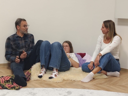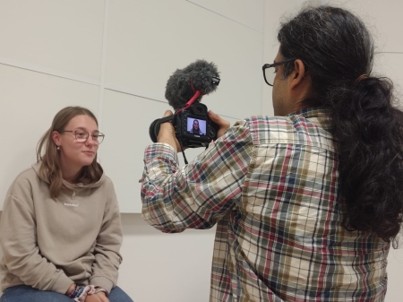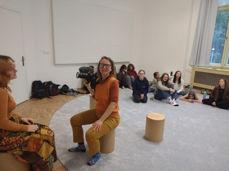 V pondělí 29.9.2025 k nám do Literárně dramatického oboru zavítali filmaři- režisérka Viktoria Rampal Dzurenko a kameraman Ranjan Rampal. S dvěma desítkami žáků a jejich pedagogy natáčeli rozhovory a scénky pro československý koprodukční dokumentární film o závislosti a vlivu moderních technologií na rodinný život/ společnost.